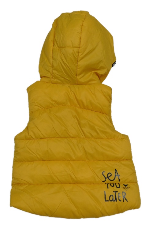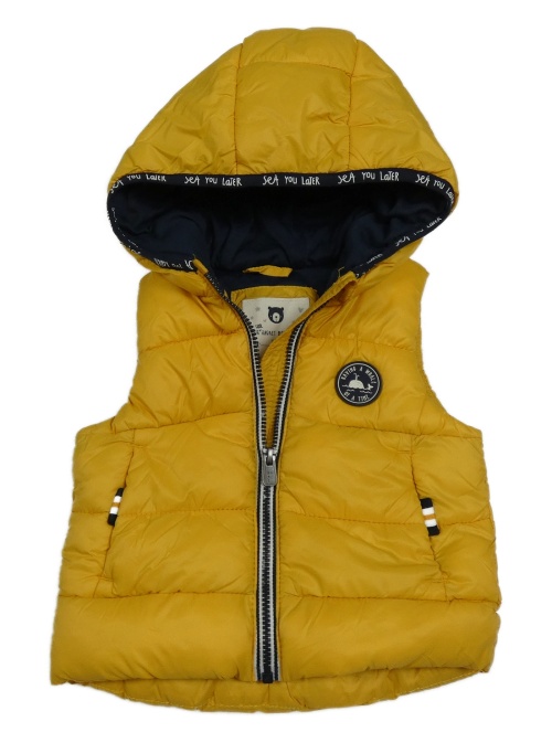 Žlutá šusťáková zateplená vesta s nášivkou a kapucí C&A
