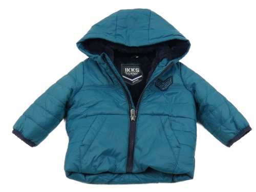 Petrolejová šusťáková zimní bunda s nášivkou a kapucí ikks