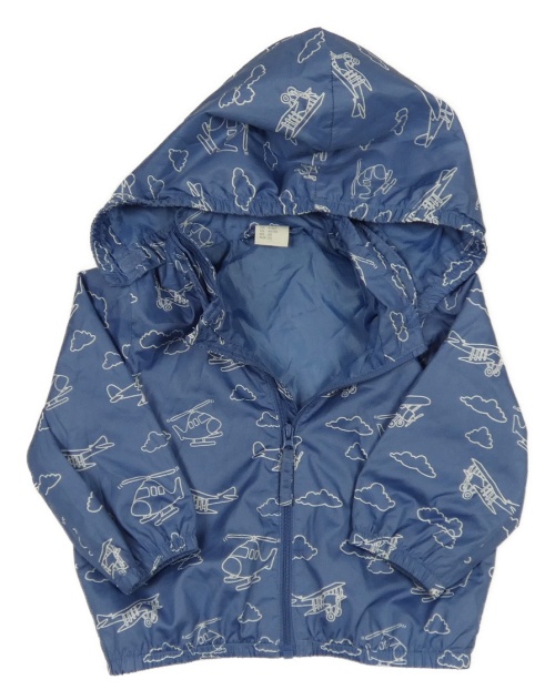 Modrá šusťáková jarní bunda s vrtulníky a kapucí H&M