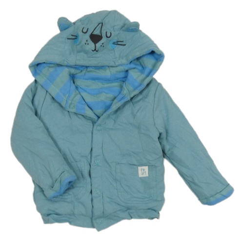 Světlemodrošedý zateplený kabátek s kapucí s čumáčkem St. Bernard