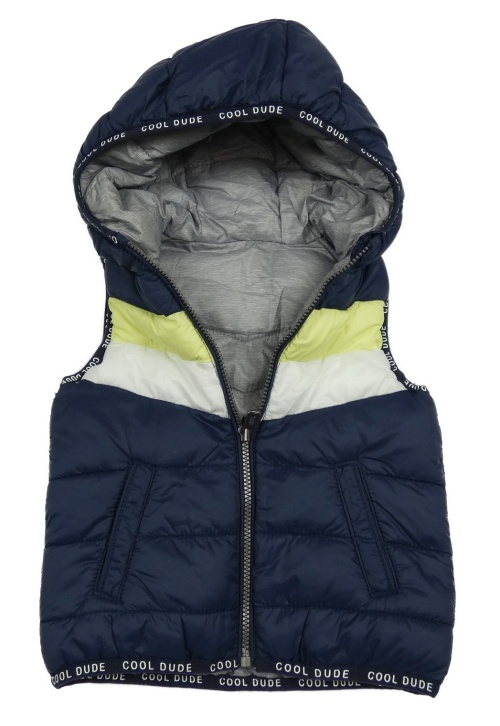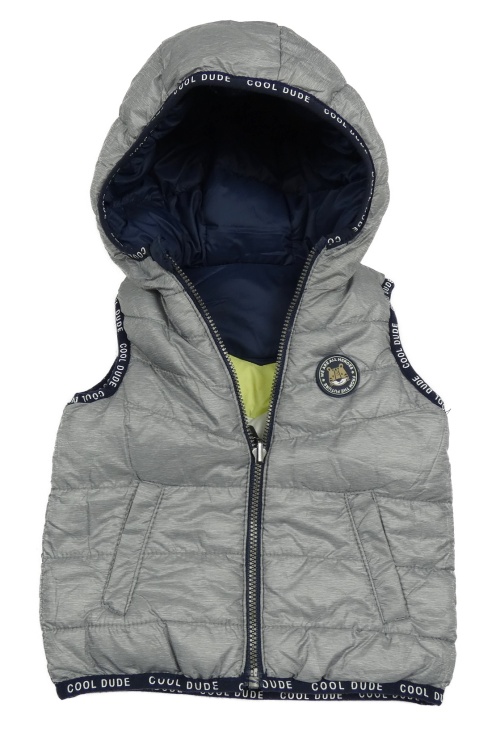 Šedá melírovaná šusťáková zateplená oboustranná vesta s kapucí C&A