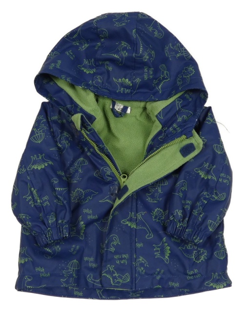 Tmavomodrá nepromokavá lehce zateplená bunda s dinosaury a kapucí Ergee