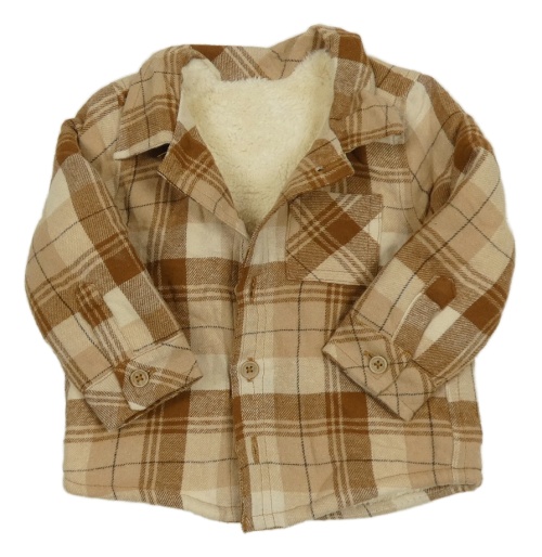 Hnědo-černá kostkovaná zateplená košilová bunda Tu