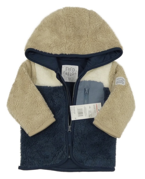 Nové - Tmavomodro-béžovo-smetanová chlupatá podšitá bunda s kapucí F&F