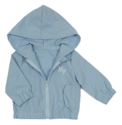 Světlemodrá šusťáková bunda s písmenky a kapucí SHEIN