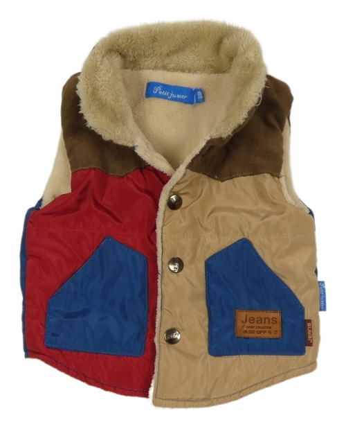 Hnědo-béžovo-červená šusťákovo/semišová zateplená vesta