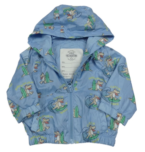 Světlemodrá šusťáková jarní bunda s dinosaury a kapucí M&S