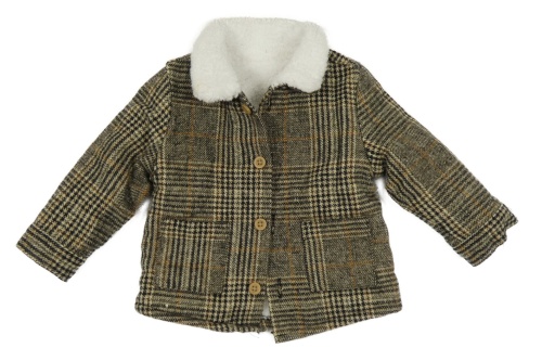 Béžovo-hnědo-černá kostkovaná vzorovaná zateplená bunda s límečkem Tu