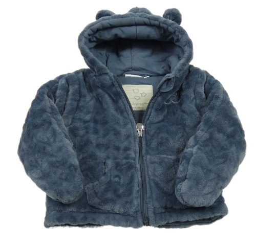 Šedomodrá chlupatá zateplená plyšová bunda s kapucí