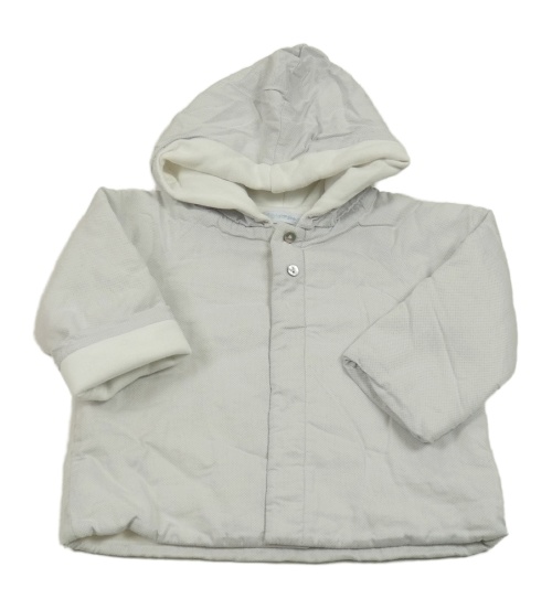 Bílý puntíkatý zateplený kabátek s kapucí