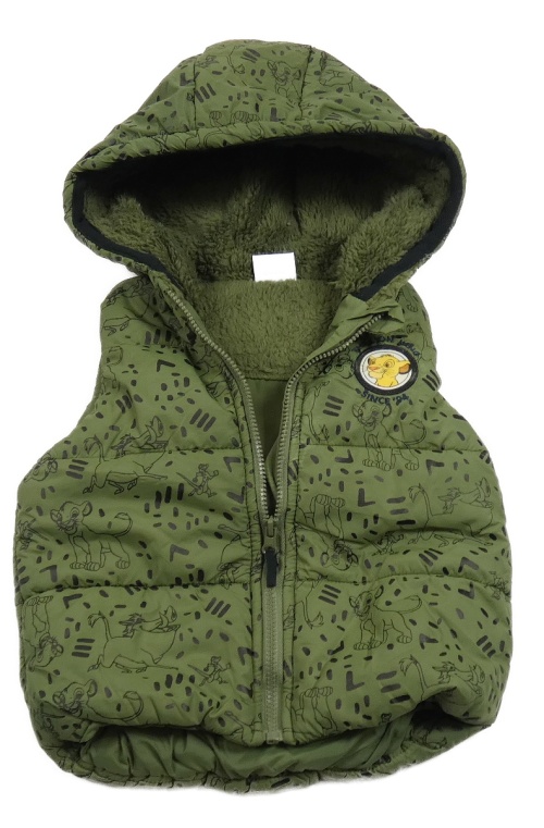 Khaki šusťáková zateplená vesta se Simbou a kapucí Disney