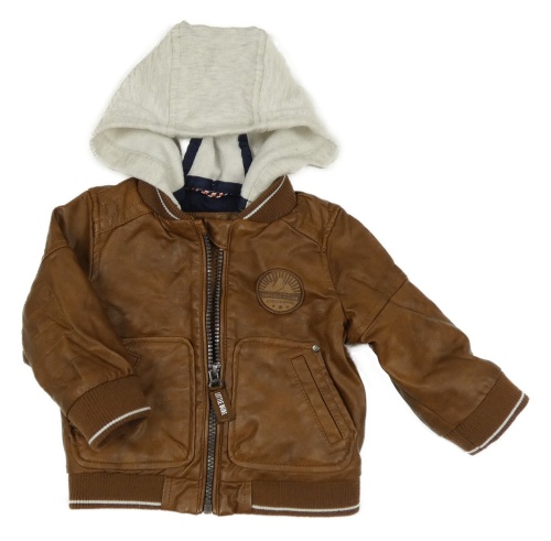 Hnědý koženkový zateplený bomber s nášivkou a odepínací kapucí C&A