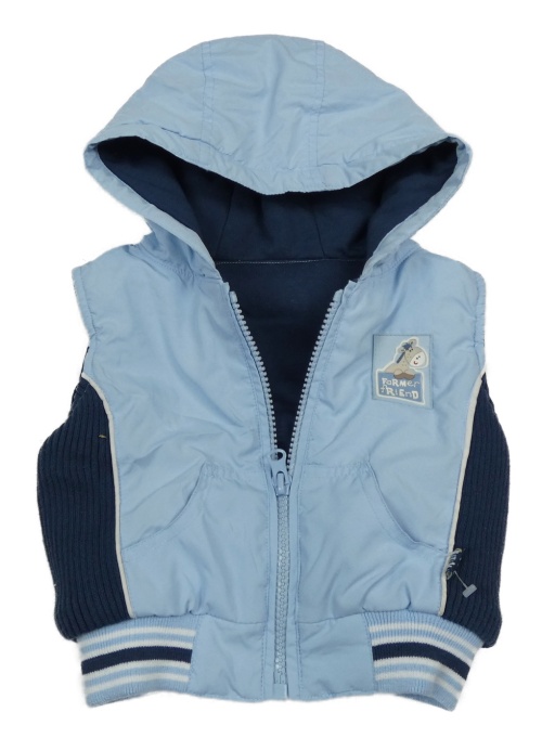 Světlemodro-tmavomodrá šusťáková zateplená vesta s kapucí St. Bernard