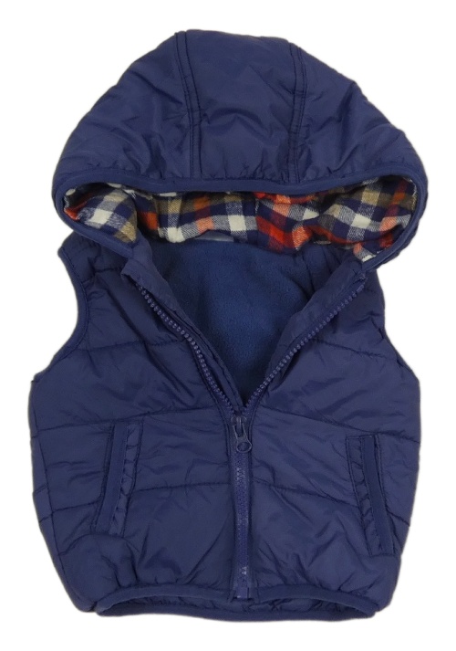 Tmavomodrá šusťáková prošívaná zateplená vesta s kapucí F&F