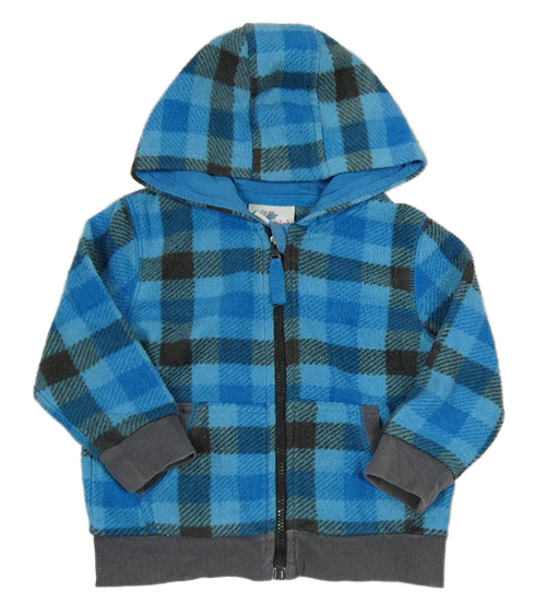 Modro-tmavošedý kostkovaný fleecový bomber s kapucí Topolino