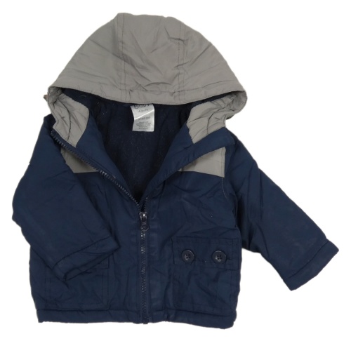 Šedo-tmavomodrá šusťáková zateplená bunda s kapucí Baby