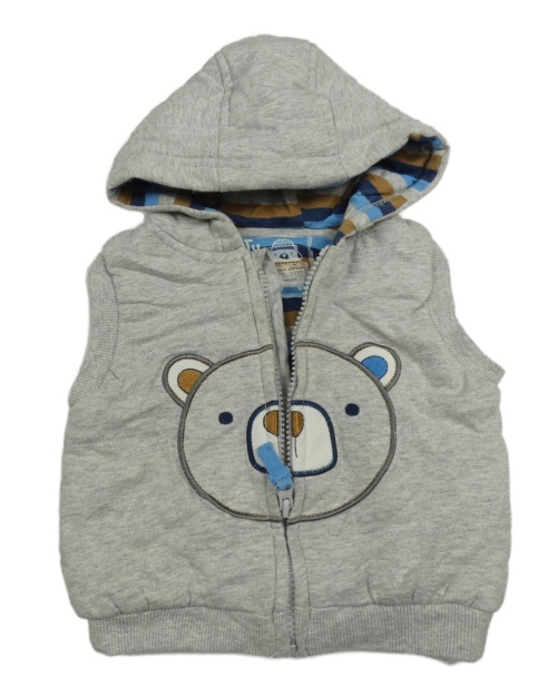 Šedá melírovaná tepláková zateplená vesta s medvědem a kapucí Tu