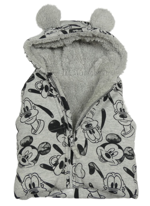 Šedá tepláková zateplená vesta s Micekym a kamarády a kapucí George
