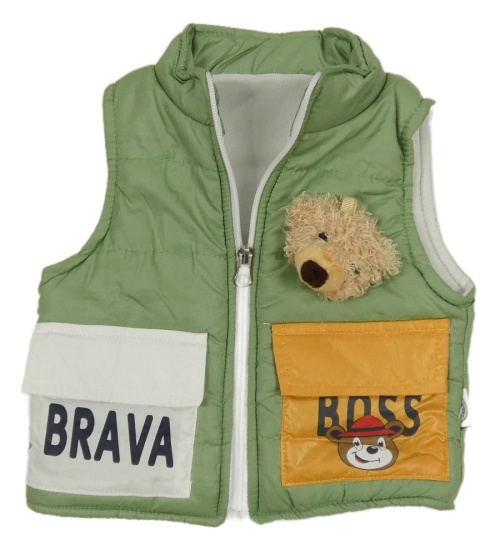 Zelená šusťáková zateplená vesta s odepínacím medvědem
