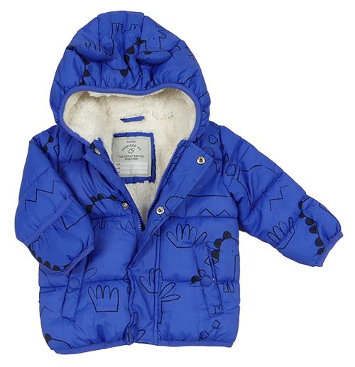 Modro-černá šusťáková zimní bunda s dinosaury a kapucí George