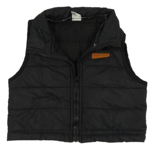 Černá prošívaná šusťáková zateplená vesta s nášivkou SHEIN