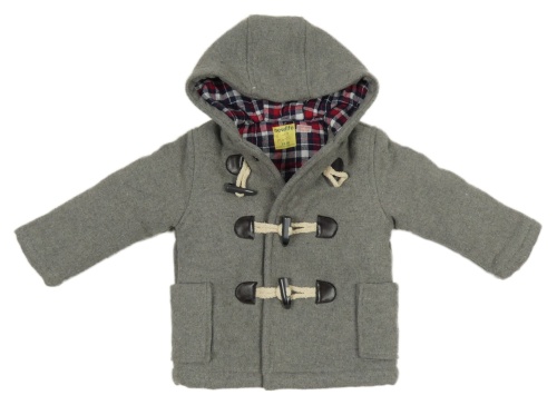 Nové -Tmavošedý flaušový zateplený kabát s kapucí