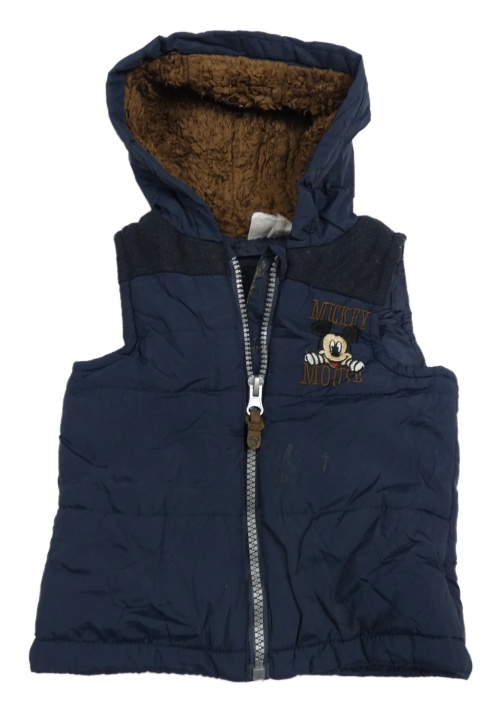 Tmavomodrá šusťáková zateplená vesta s Mickeym a kapucí Disney