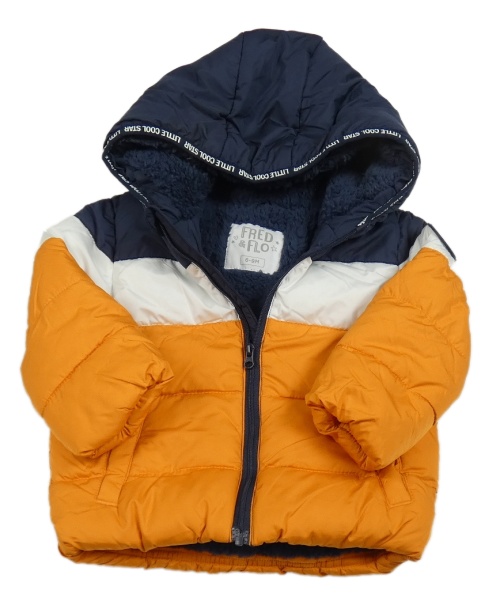 Tmavomodro-bílo-oranžová šusťáková zimní bunda s kapucí F&F