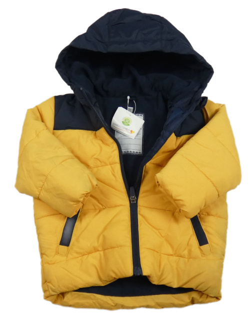 Nové - Žluto-tmavomodrá šusťáková zimní bunda s kapucí Topolino