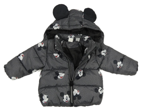Tmavošedá šusťáková zimní bunda s Mickeym a kapucí H&M