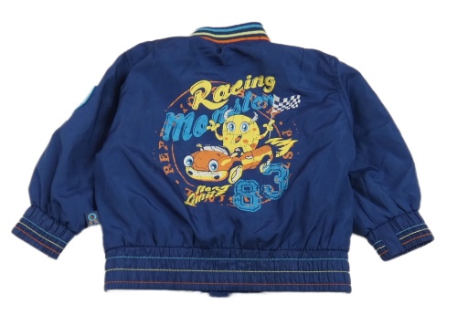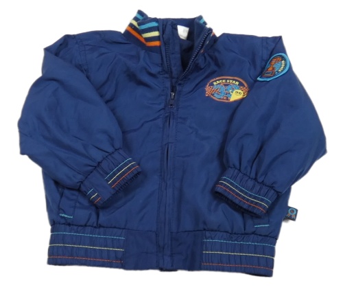 Tmavomodrá šusťáková podzimní bunda s autem Okay