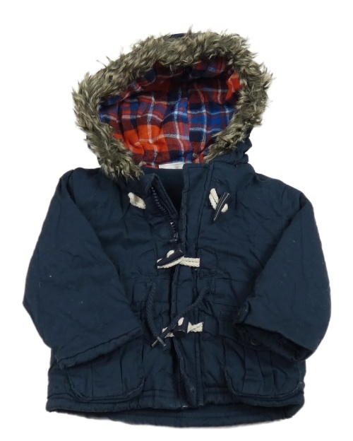 Tmavomodrá plátěná zateplená bunda s kapucí F&F