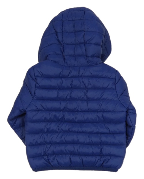 Tmavomodrá šusťáková prošívaná zateplená bunda s kapucí Lupilu