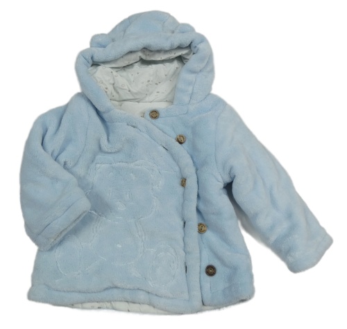 Světlemodrá chlupatá zateplená bunda s kapucí