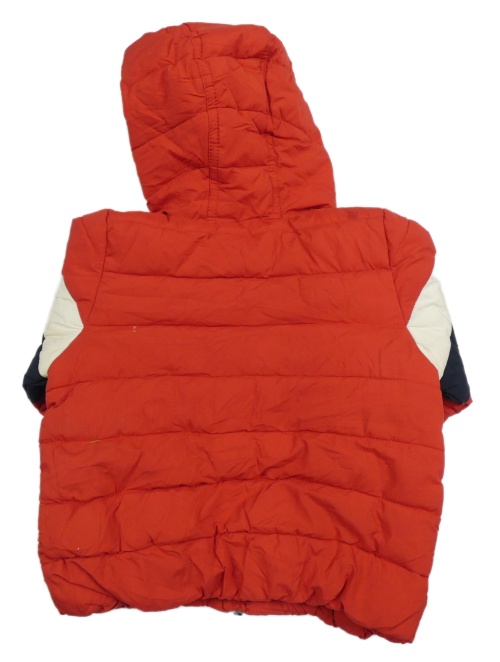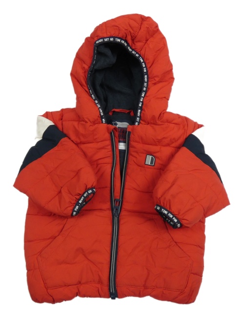 Červeno-bílá šusťáková prošívaná zateplená bunda s nášivkou a kapucí Next