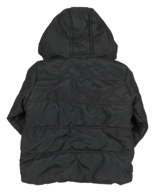 Antracitová kostičkovaná šusťáková zimní bunda s nápisem a kapucí Topomini