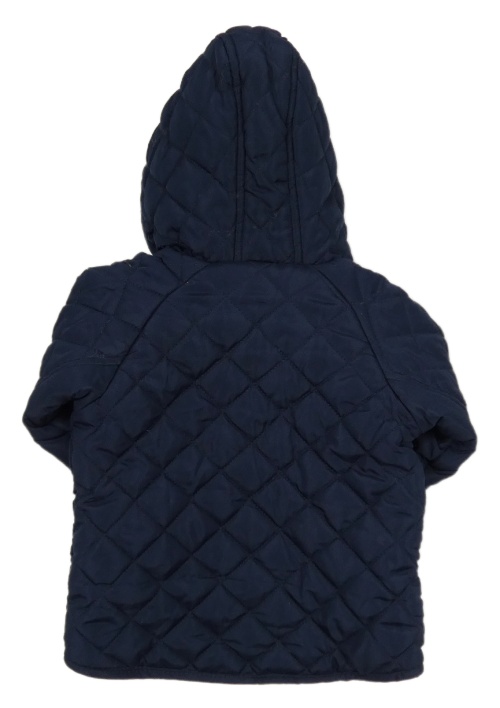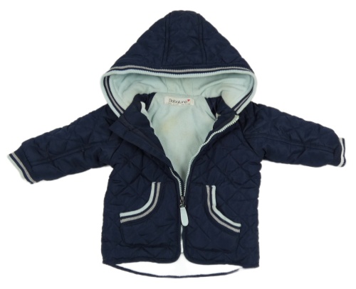 Tmavomodrá šusťáková prošívaná zateplená bunda s kapucí