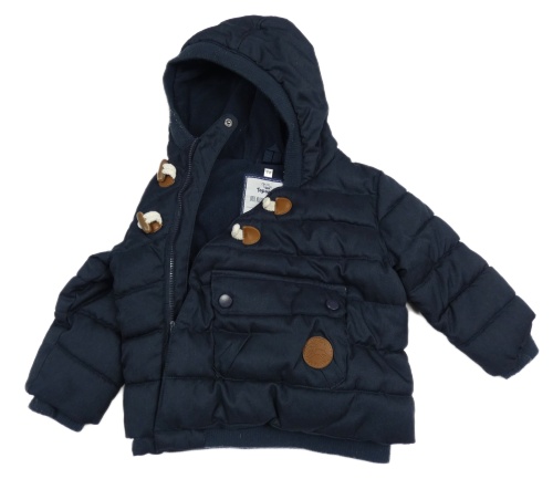 Tmavomodrá šusťáková prošívaná zimní bunda s kapucí Topomini