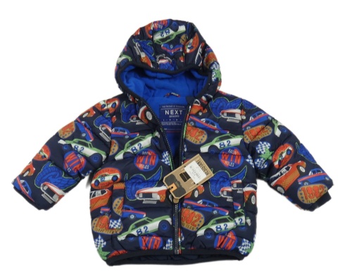 Nové - Tmavomodrá šusťáková zimní bunda s auty a kapucí Next