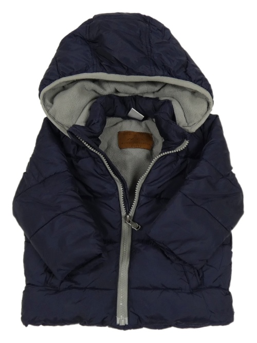 Tmavomodrá šusťáková prošívaná zimní bunda s kapucí Zara