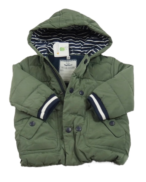 Nové - khaki-tmavomodrá prošívaná šusťáková zimní bunda s kapucí Topomini