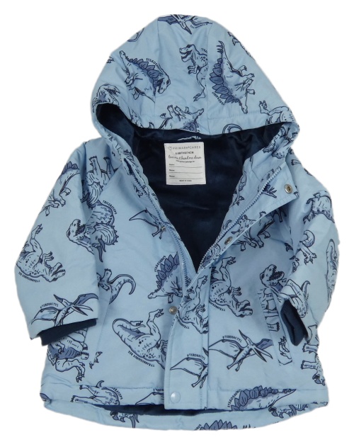 Světlemodrá šusťáková zimní bunda s dinosaury a kapucí Primark