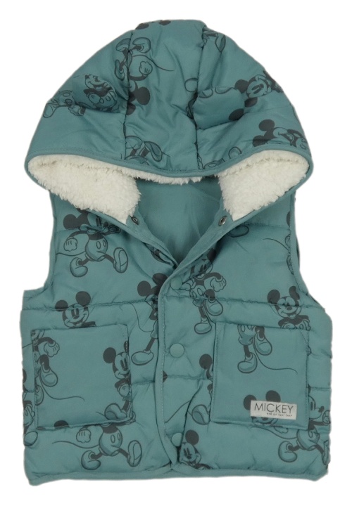 Zelená šusťáková zateplená vesta s Mickeym a zateplenou kapucí George