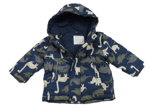 Tmavomodrá šusťáková zimní bunda s dinosaury a kapucí Primark