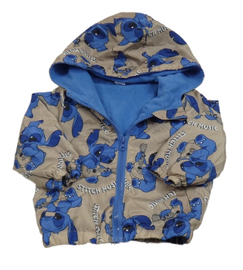 Hnědo-modrá šusťáková jarní bunda se Stitchem a kapucí Disney