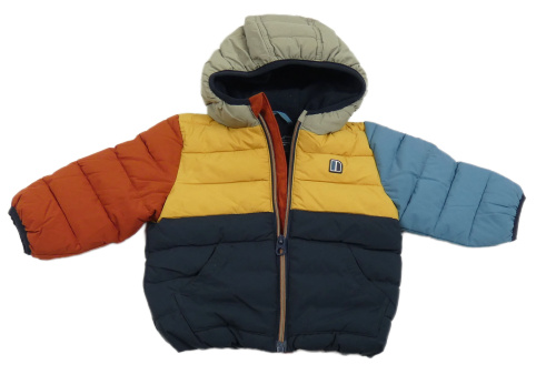 Tmavomodro-žluto-zeleno-cihlová šusťáková zimní bunda s kapucí Next