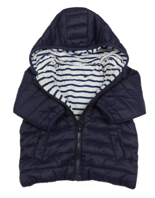 Tmavomodrá prošívaná šusťáková zateplená bunda s kapucí Next