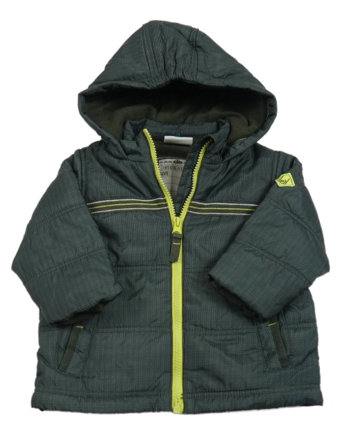 Černo-zelená kostkovaná šusťáková zimní bunda s pruhy a kapucí Topomini