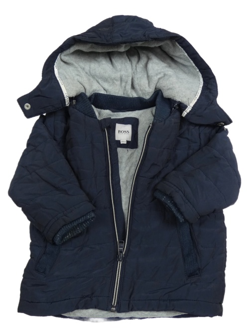 Tmavomodrá prošívaná šusťáková zimní bunda s odepínací kapucí HUGO BOSS