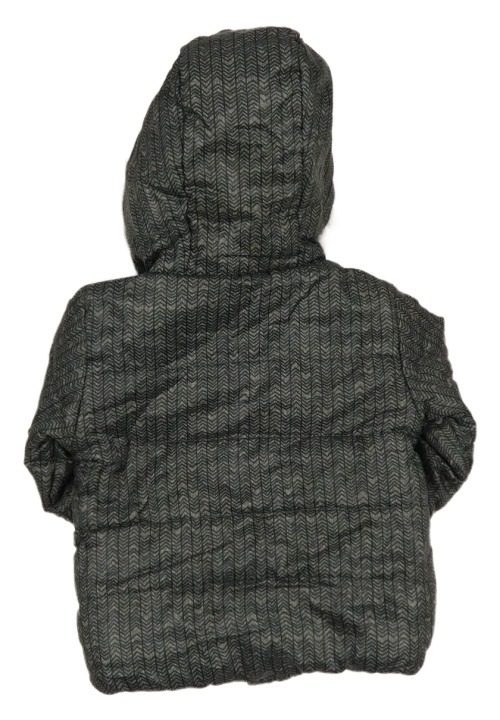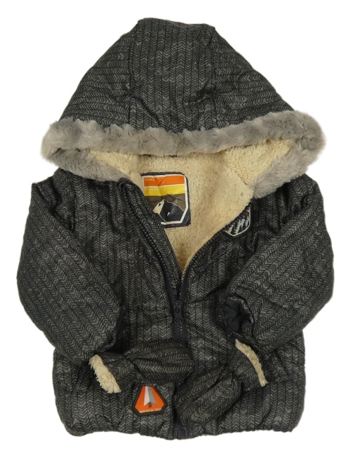 Tmavošedo-černá vzorovaná šusťáková zimní bunda s nášivkou a kapucí + rukavice Zeeman